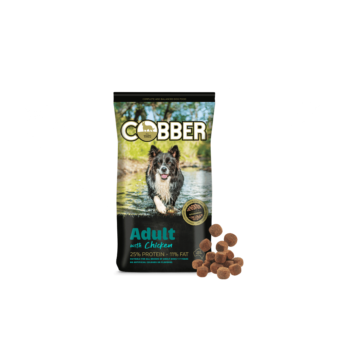 Cobber® Adult with Chicken is a well-balanced, complete chicken flavoured dog food, meeting the nutritional levels established by the Association of American Feed Control Officials (AAFCO) for maintenance of adult dogs.