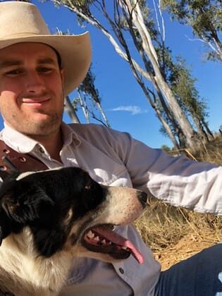 - Dan McInnes of Acheron in Victoria with their Kelpie, Jack